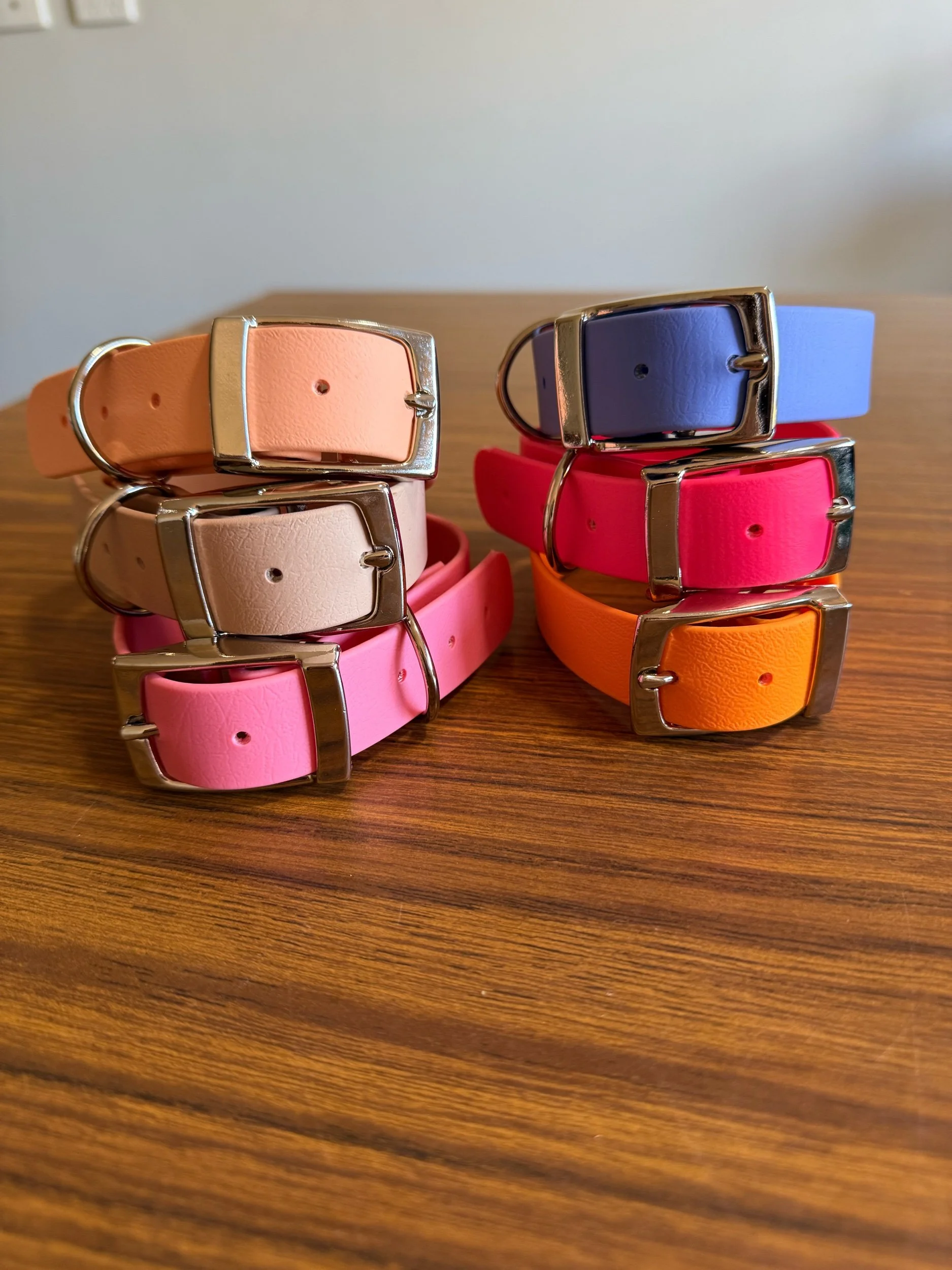 Shop All › 1Inch Size Small Biothane Collars - READY MADE Image 1 of 8 Image 2 of 8 Image 3 of 8 Image 4 of 8 Image 5 of 8 Image 6 of 8 Image 7 of 8 Image 8 of 8 1Inch Size Small Biothane Collars - READY MADE $30.00 Pre made collars All 1 inch, all size small 1 of each colour available Colour: Bubblegum pink Tropical pink Beige Periwinkle Blue Orange Peach pink Add To Cart Added! Pre made collars All 1 inch, all size small 1 of each colour available